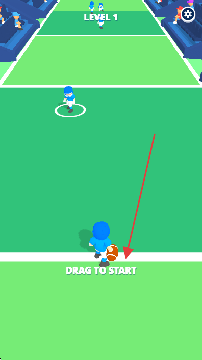 1、在L【evel1】界面,拖动持球角色,按【DRAG TO START】启动,开启橄榄球奔跑挑战。