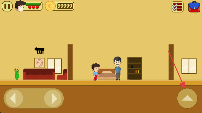 2、通过底部左右箭头按钮,操控角色在房间内左右移动,探索场景。
