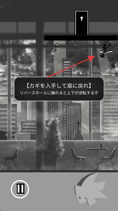 2、操控角色获取钥匙并返回门,触碰反转球会触发上下颠倒效果。