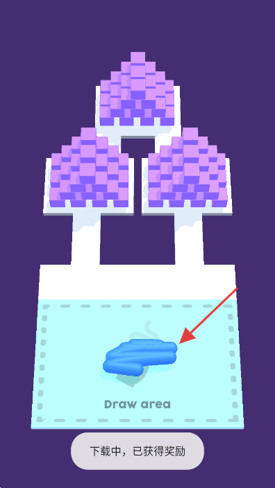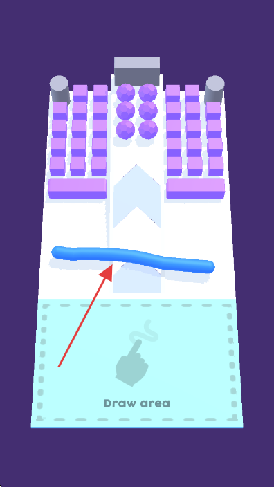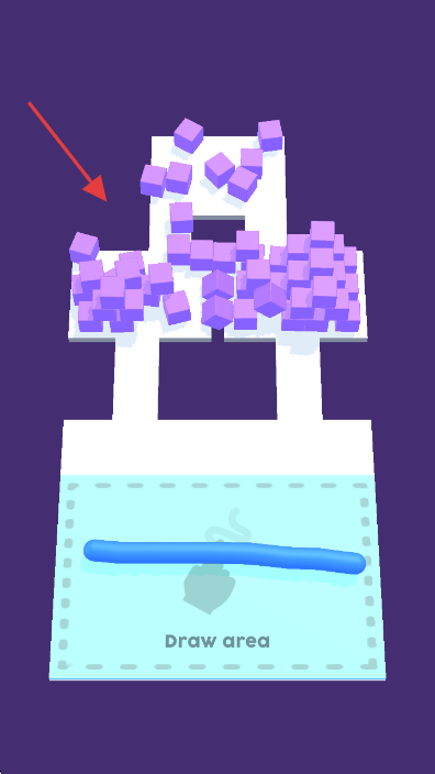 2、绘制的蓝色物体推动上方紫色方块掉落,填充空间以构建结构。