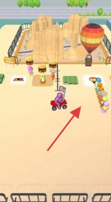 2、在乐园场景,靠近建筑、道具,自动收集资源;沙漠场景骑小车,收集排队人群等,积累物资。
