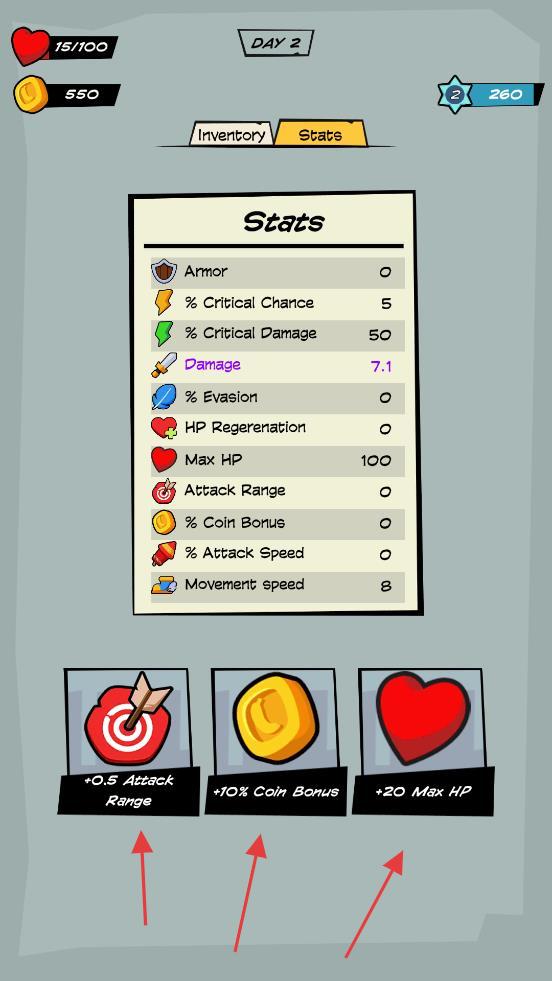3、进入“Stats”界面,用金币提升角色属性,强化战力,应对后续高难度关卡与敌人。