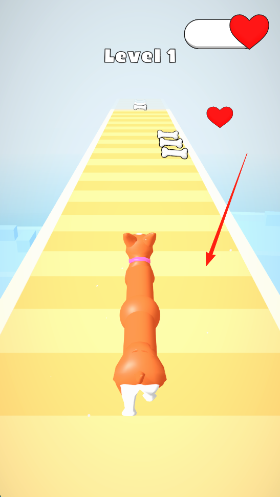 1、操控小狗沿跑道前进,收集骨头道具,注意躲避危险,保持奔跑状态。
