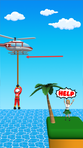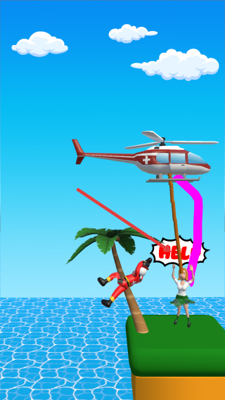 1、操控直升机位移,调整绳索路径,避棕榈树连接求救女孩。