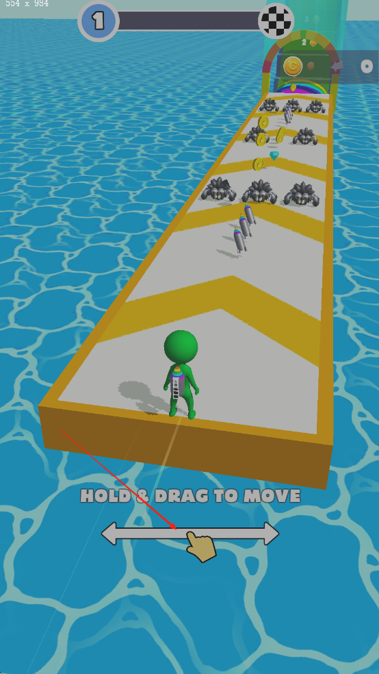 1、进入游戏后在关卡选择界面点击开始,通过连续点击屏幕操控角色加速奔跑,长按屏幕可让角色跳跃起飞以跨越地面障碍。