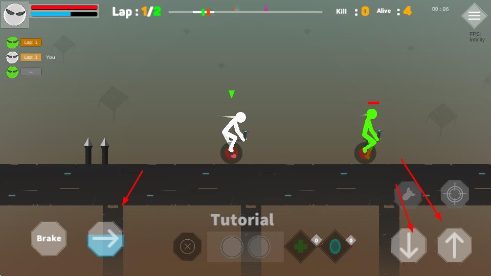 1、基础移动与跳跃:通过滑动屏幕控制火柴人在赛道上移动,点击跳跃按钮躲避障碍物,合理掌握跳跃时机是生存的关键。