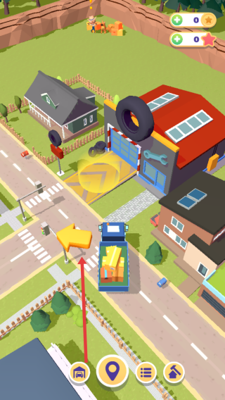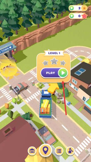 2、操控蓝色货车沿黄色箭头指引,行驶至LEVEL1关卡的起始位置。