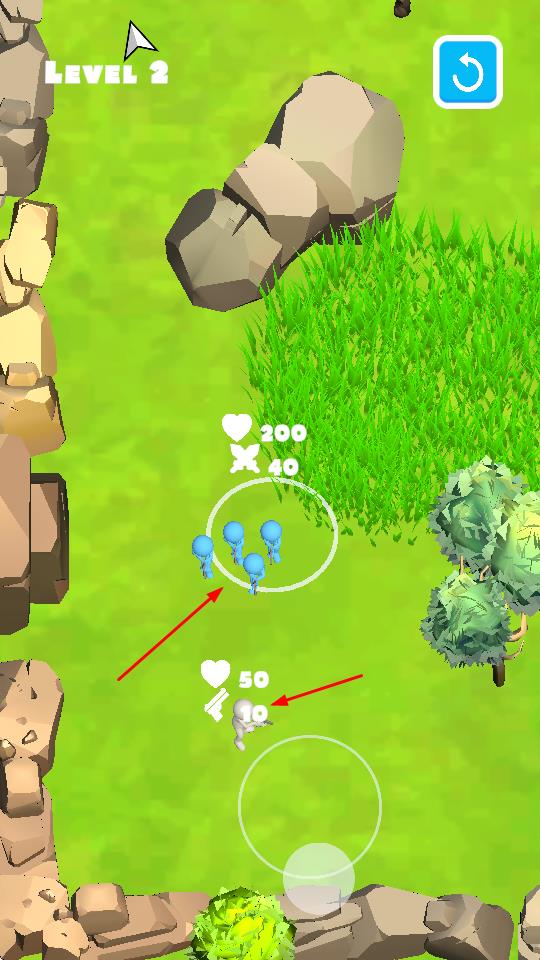 1、明确的阵营划分:只有白色小人可被玩家收集并纳入队伍,其他颜色的小人则为敌对势力,这一设定简化了战斗逻辑。