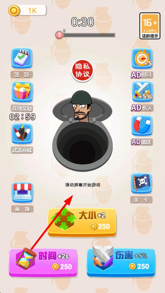 1、进入游戏,滑动屏幕启动黑洞,调整覆盖范围,在限时内精准吞噬关卡中的子弹等目标,开启挑战。