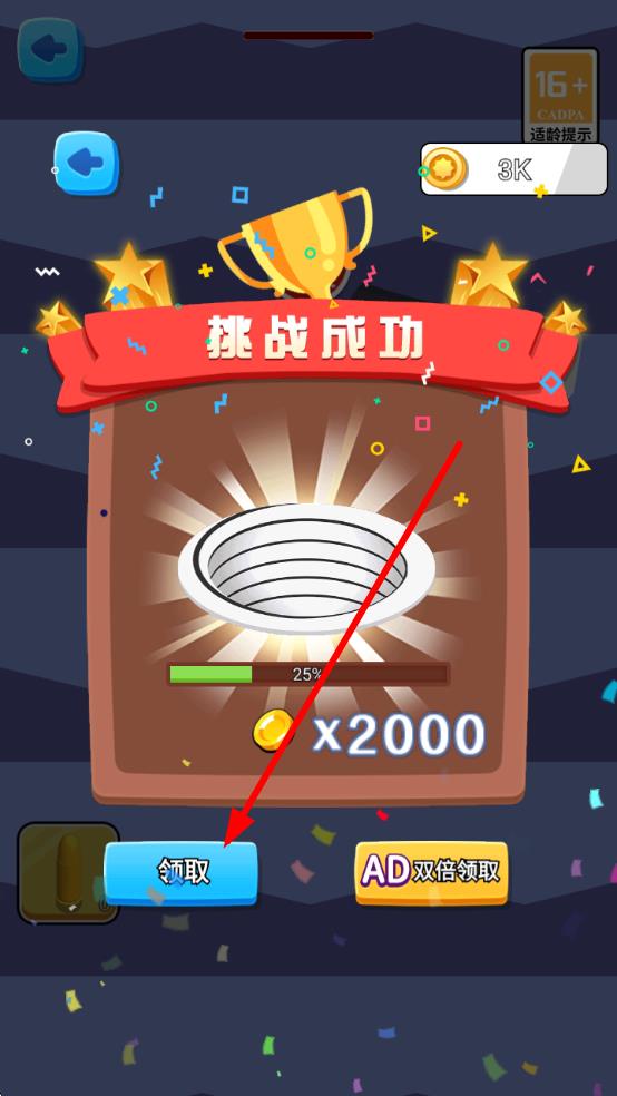 3、限时结束前完成吞噬任务,挑战成功后点击“领取”奖励,积累资源升级黑洞,解锁更高难度关卡。