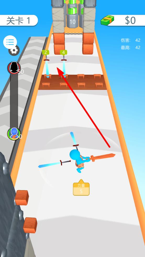 1、武器收集策略:优先规划路线,多收集赛道上的小剑,快速扩充武器数量,增强破障能力。