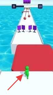 1、操控绿色角色起跑,进入水上赛道开启跑酷。