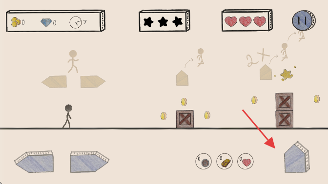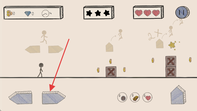 3、点击箭头指的位置让火柴人跳跃,越过障碍。