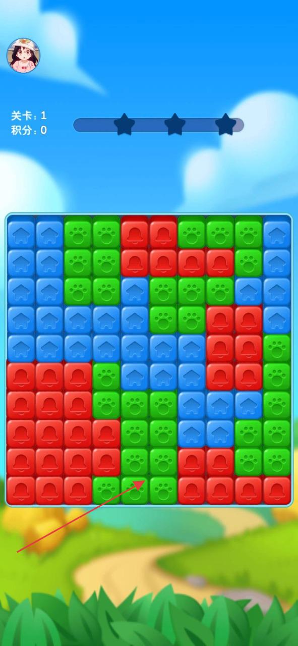 1、进入关卡(如关卡1),观察彩色方块布局,点击至少两个相邻同色方块,触发消除。