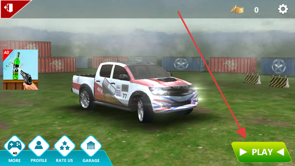 1、进入游戏主界面,点击绿色【PLAY】按钮,选择模式开始挑战,驾驶皮卡车体验玩法。