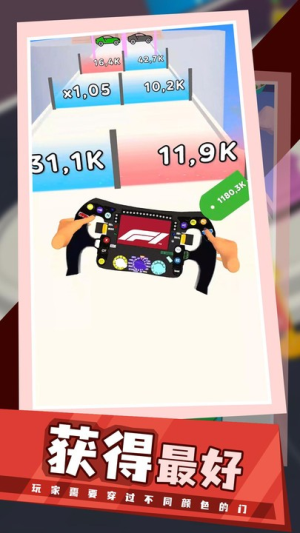 2、积累方向盘价值,不同品质的方向盘提供不同分值,玩家需在有限时间内尽可能获取高分值方向盘,为最终兑换豪车积累足够资本。
