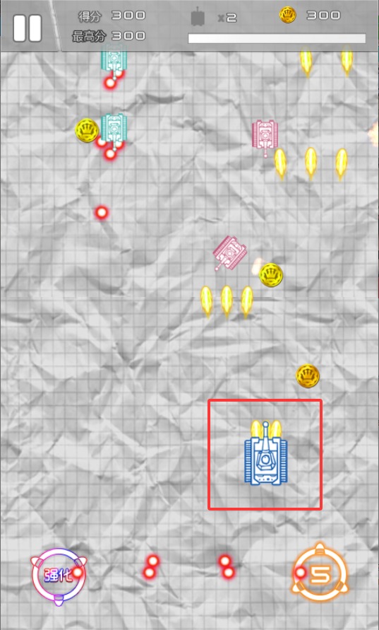 1、游戏开始前在车库界面选择初始坦克型号,轻型坦克移动迅速但防御较弱,重型坦克则相反各有优劣。