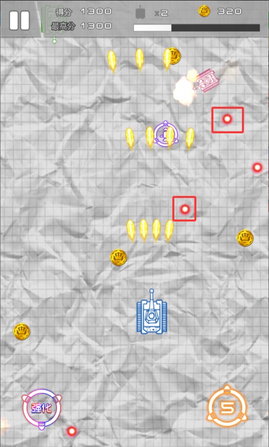 4、强化功能运用:战场中随机掉落攻击强化、临时护盾等增益道具,屏幕下方能量槽满后可激活终极技能,合理使用能瞬间扭转战局。