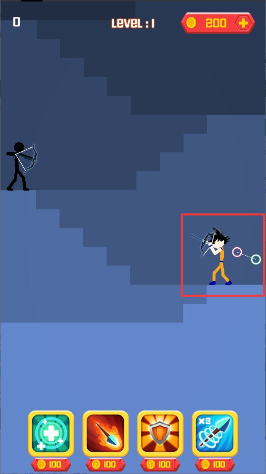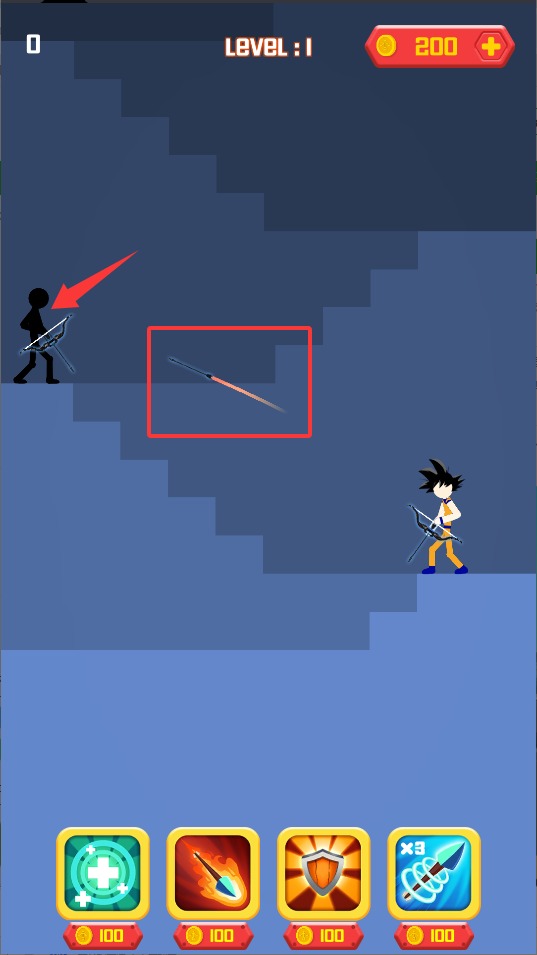 1、游戏启动后点击中央开始键位,角色会自动进入射击准备状态,屏幕上方会显示当前关卡剩余目标数。