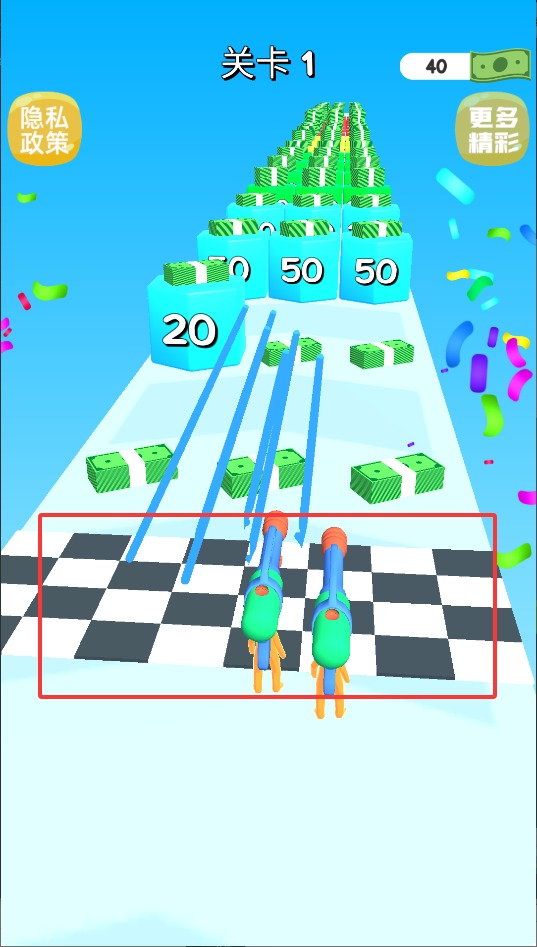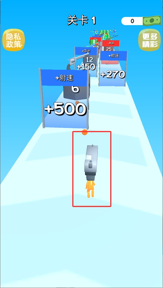 2、在前进过程中收集金色钥匙,穿过彩色光门可解锁更强力的武器,不同枪械拥有独特的射程和伤害效果。