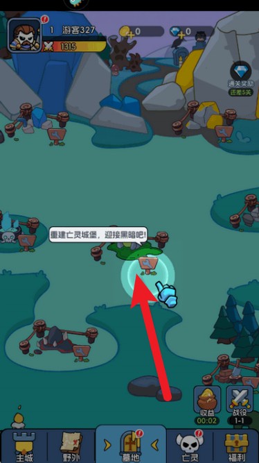 1.点击画面中央图标建造亡灵城堡,开启你的防守冒险,准备迎战即将来袭的黑暗势力。