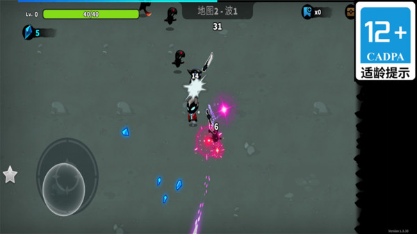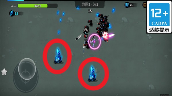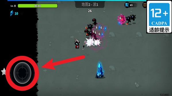 1.左下角的圆形摇杆用于控制角色移动方向,避开敌人攻击是关键生存技巧。