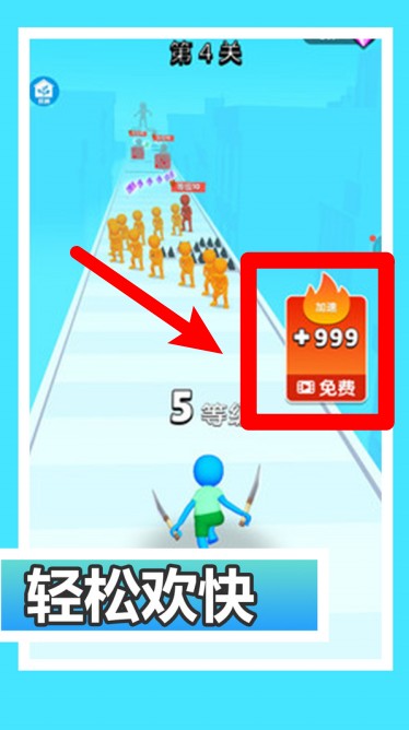 2.点击右下角的“免费”按钮观看广告,即可领取一次+999的高额加速效果,让你战斗更有爆发力。