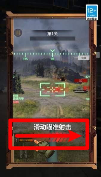 1.进入战斗后滑动屏幕即可控制瞄准镜方向,精准锁定敌军坦克位置进行目标跟踪射击。