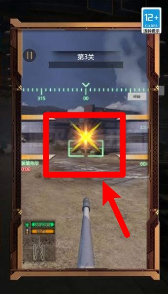 2.绿色准星对准敌方单位后会自动变红,表示进入有效攻击范围,点击射击可造成伤害。