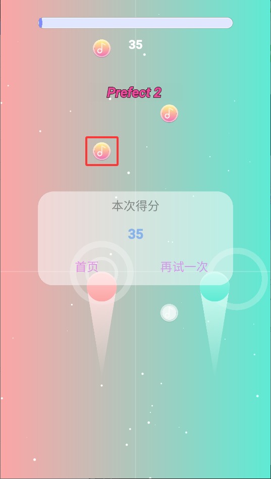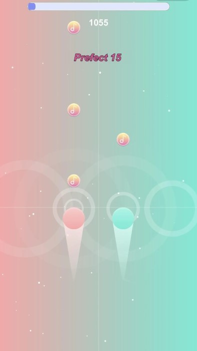 1、核心玩法是控制双球接取下落音符。黑白两球分别对应屏幕左右区域,玩家需要及时移动它们触碰同色音符,完成节奏点击。