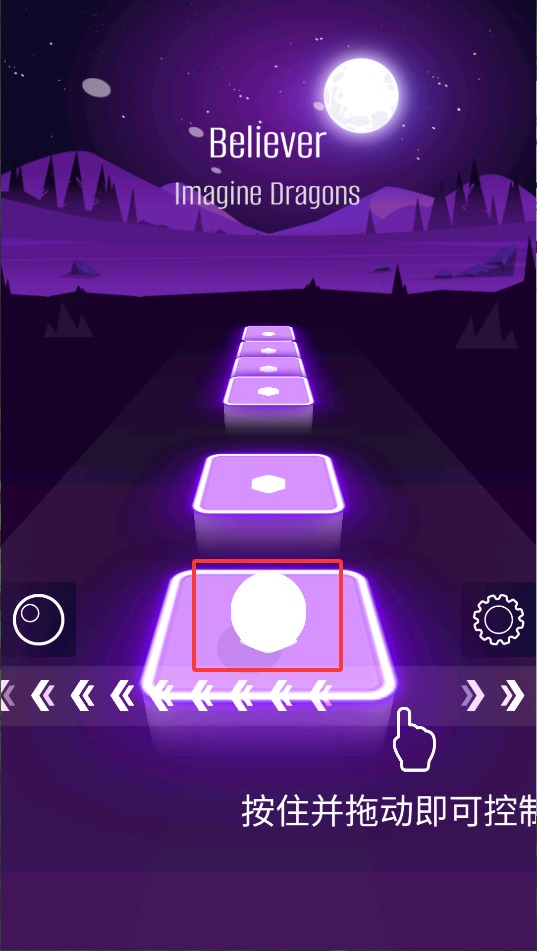 1、进入游戏后通过左右滑动屏幕来操控音乐球移动,注意跟随背景音乐的节奏调整速度。