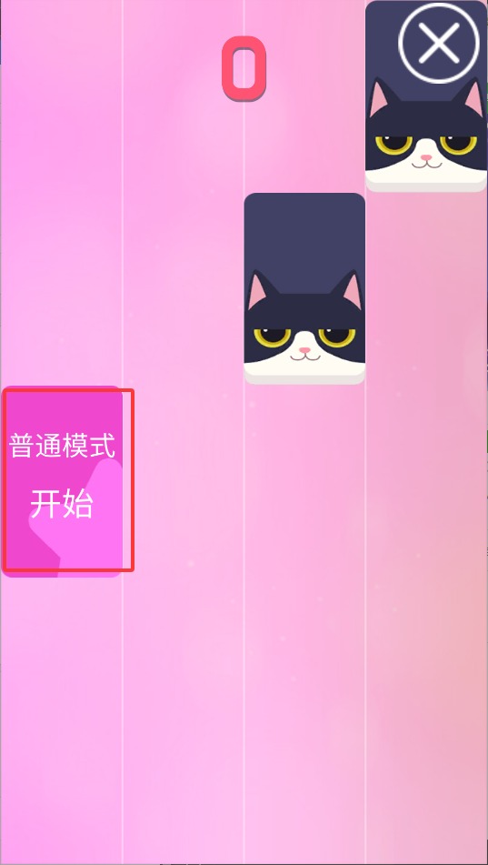 1、游戏启动后,先点击屏幕中央的"开始"按钮,随后会出现一排可爱的喵喵钢琴键等待互动。