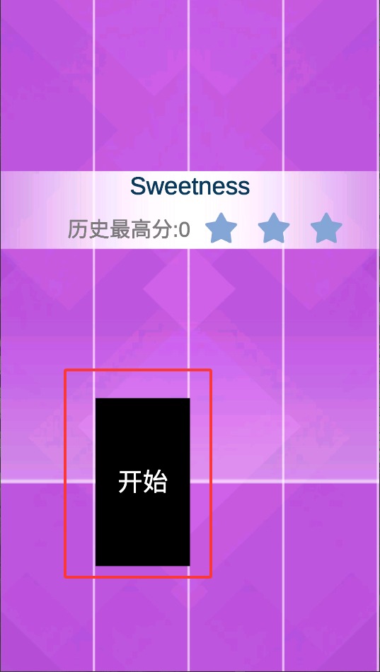 1、进入游戏界面后,首先找到"开始"按钮轻触启动,这时会出现颜色各异的琴键等待操作。