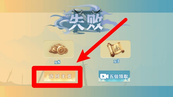 3.失败后点击“返回主页”可以重新布阵并挑战不同关卡避免重复失败。