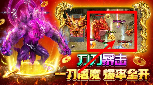 2.刷怪爆率超高,轻松一刀屠魔赢取稀有装备掉落,体验满屏金光和豪华战利品,彻底点燃热血激情战斗心情。