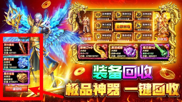 3.装备回收系统可将闲置或多余装备一键回收,获取元宝和强化材料奖励,省时省力,轻松打造顶级战斗力。