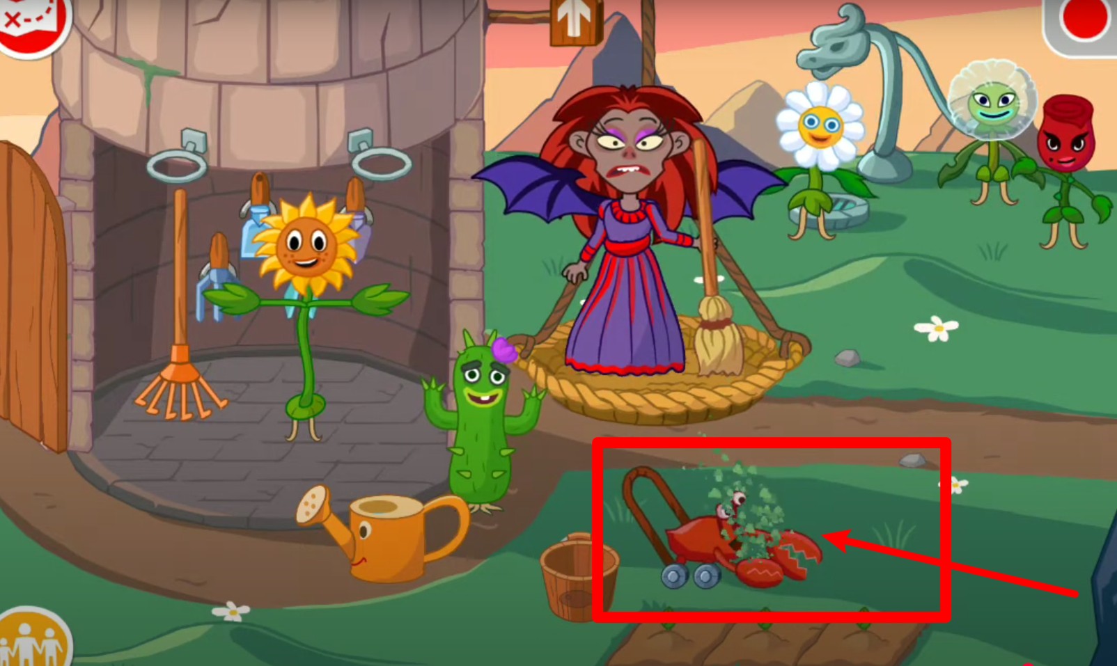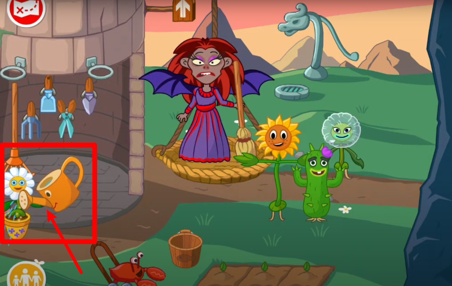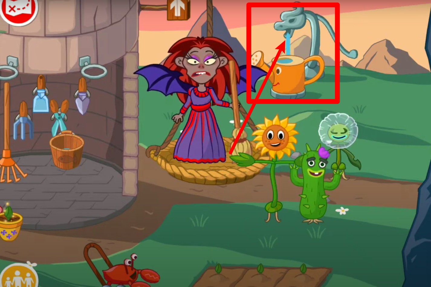 2.利用浇水壶与花盆中花朵互动,使花朵成长进而解锁隐藏任务和道具。