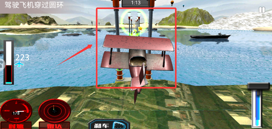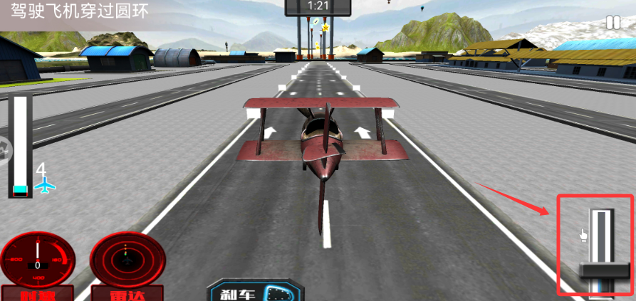 2、通过虚拟操纵杆控制飞机升降,保持平稳姿态完成基础飞行动作。