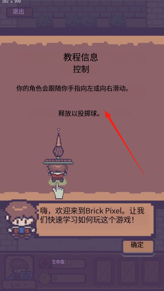 1、进入破砖怪兽游戏,按照教程信息得知,角色的手会根据你的手指移动,释放以投掷球。