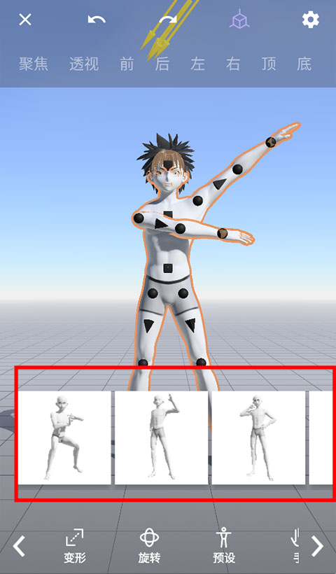 1、关节姿态调节:通过拖拽人物关节控制点,自由调节角色动作造型,打造独特的动态姿态效果。