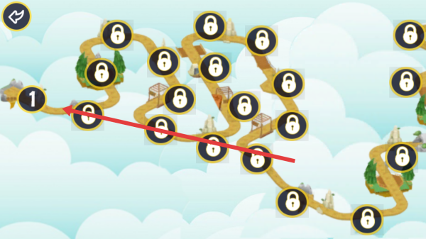 3、关卡地图,点击【1】号关卡(箭头指向),开启首关,驾驶怪兽卡车,在云端赛道竞速,解锁后续关卡。
