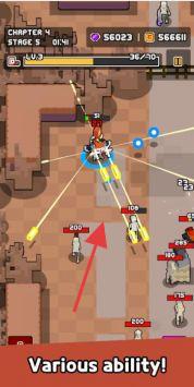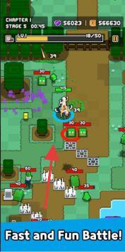 1、操控角色在关卡场景移动,自动攻击周围敌人,快速清场,体验“割草”爽感。