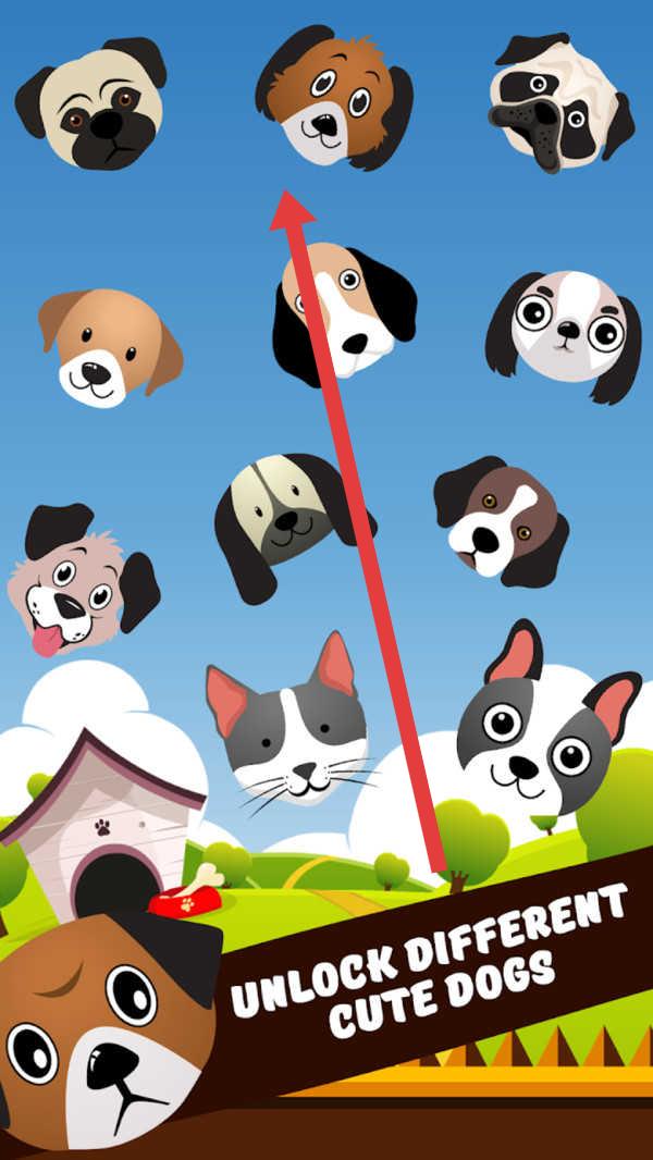 3、多样狗狗收集:包含多个品种的狗狗形象,如丑萌的小哈巴狗,玩家可通过累计关卡数量收集,增添游玩收集乐趣。