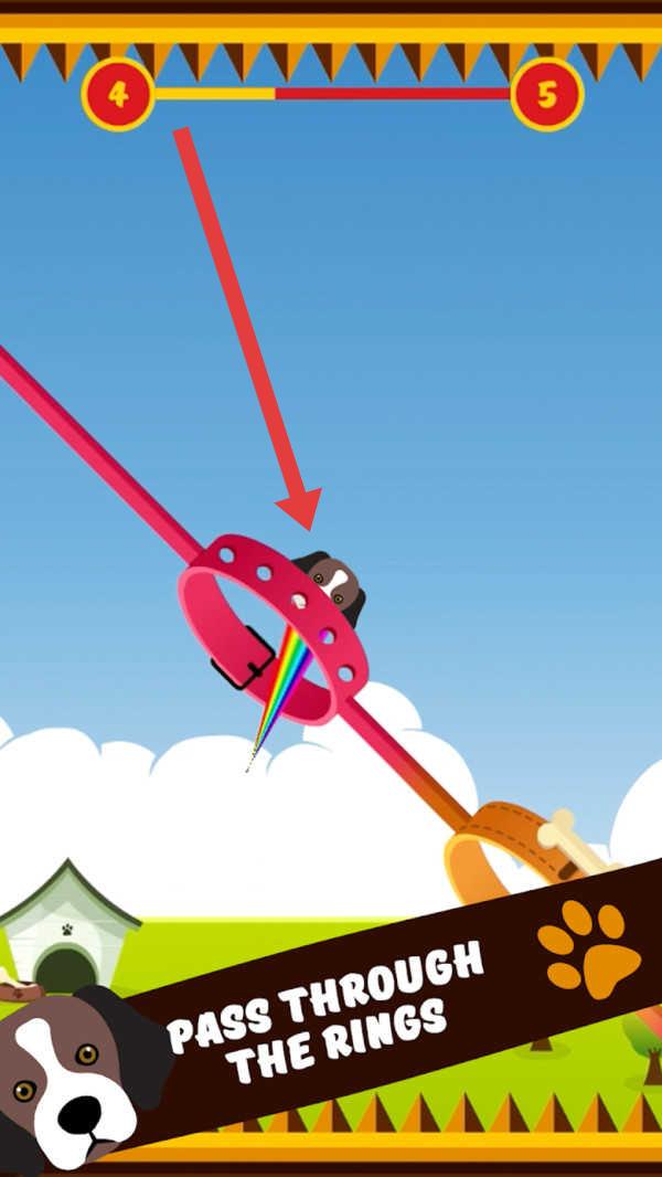 1、点击切换方向:玩家点击屏幕即可切换狗狗方向,精准控制其穿越戒指的路径,确保穿过金戒指获取分数。