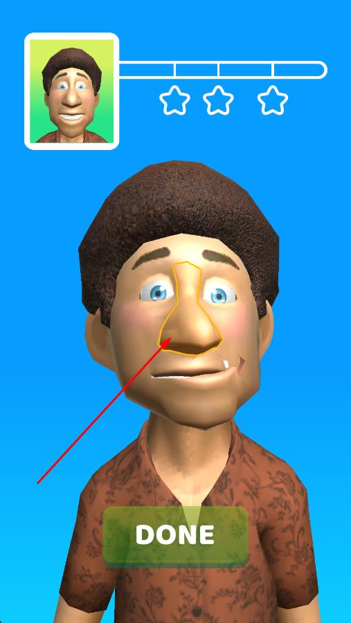 1、进入关卡后查看顾客的整形需求,点击选中需要调整的面部部位,如鼻子、脸颊等,用手指滑动屏幕拉伸或捏合皮肤,进行初步塑形。