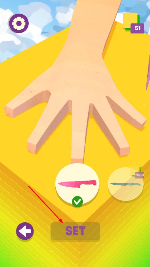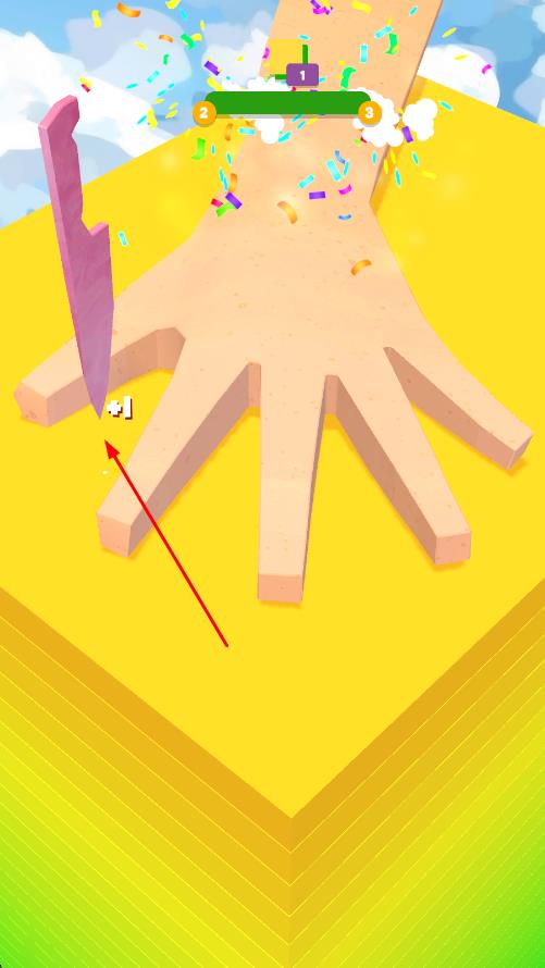 1、进入游戏后,手掌固定在木板上,观察小刀下落节奏,当刀刃对准指缝间隙时快速点击屏幕,让小刀精准插入木板。
