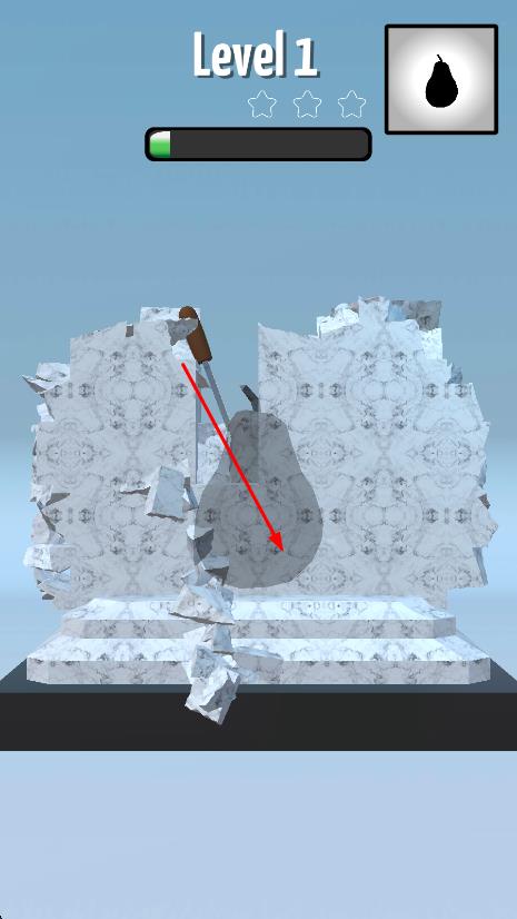 1、进入游戏选择待雕刻的岩石,观察目标图形轮廓,滑动屏幕操控工具沿岩石表面凿刻,逐步削去多余部分。