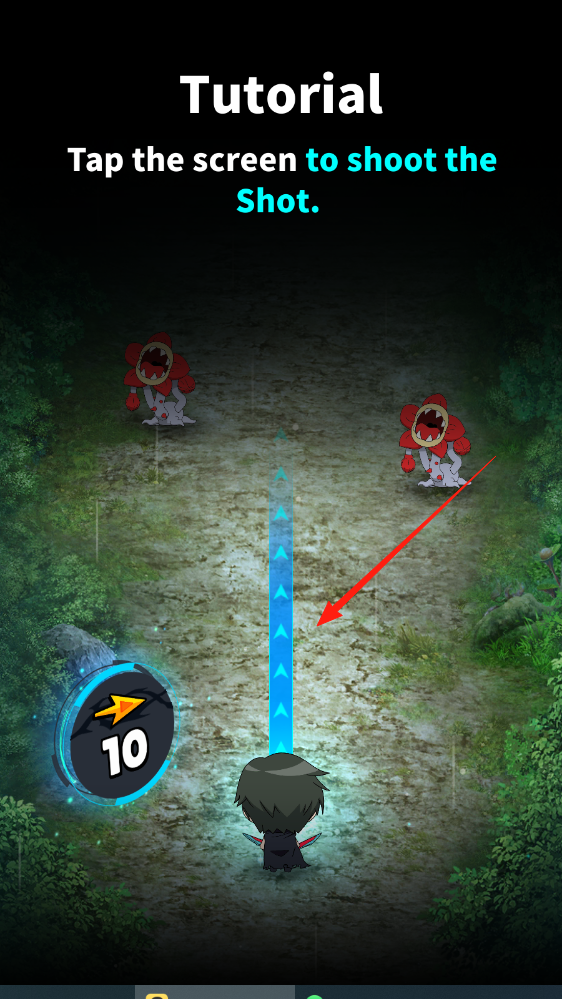 2、跟随教程,点击屏幕发射攻击,瞄准道路怪物,清除障碍,推进关卡进程。