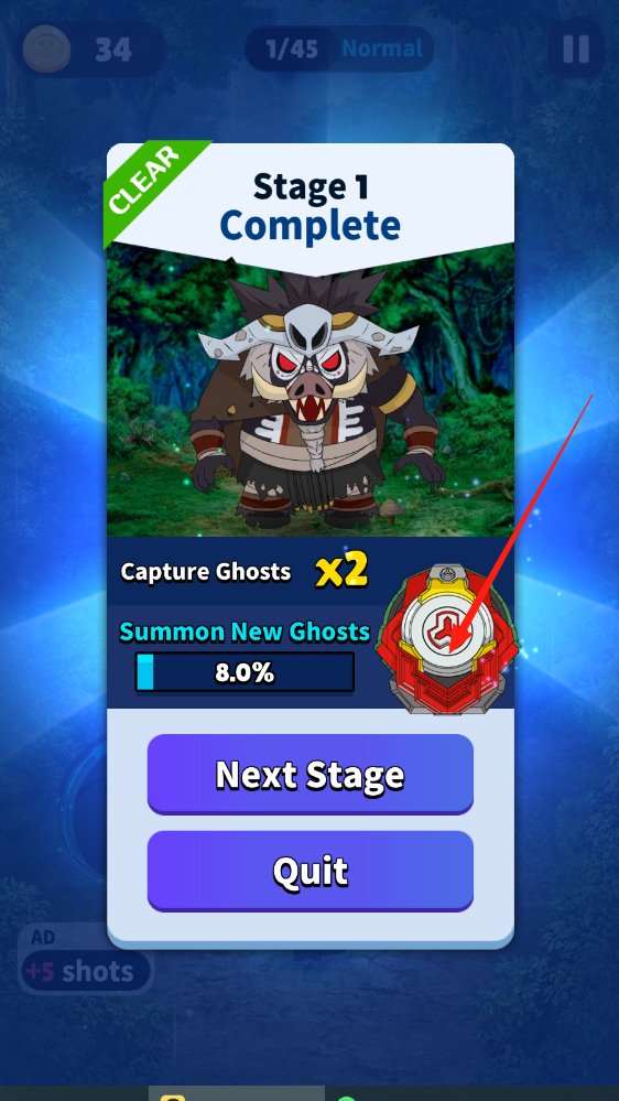 3、完成关卡后,查看奖励,点击NextStage进入新关卡,继续挑战更强敌人。