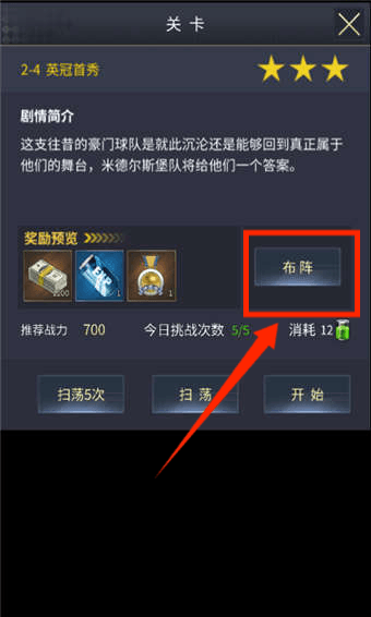 1、打开游戏选择关卡,点击布阵。